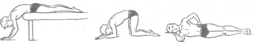 Дыхательные упражнения (статические, динамические, звуковые и дренажные). Статические дыхательные упражнения выполняют в различных исходных положениях в состоянии покоя, т. е. без движения ног, рук и туловища, динамические - выполняют в сочетании с движениями конечностей, туловища и т. д. Звуковая гимнастика состоит в применении специальных упражнений, связанный с произнесением звуков и их сочетаний. При этом обязательно происходит вибрация голосовых связок, которая передается на нижележащие части легких и способствует расслаблению легких. К дренажным упражнениям относят дыхательные упражнения, специально направленные на отток экссудата из плевральной полости и удаление мокроты. Следует различать дренажные упражнения (дыхательные) и позиционный дренаж (специально заданные позиционные исходные положения, также направленные на отток экссудата по дыхательным путям по принципу «желоба») (рис.1).