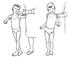 Ары қарай қозғалыс қабілеті тексеріледі: қозғалыс көлемі, олардың нақтылығы мен қалыптылығы, бұлшықеттердің тонусы және күші. Атрофиялардың, спастикалық